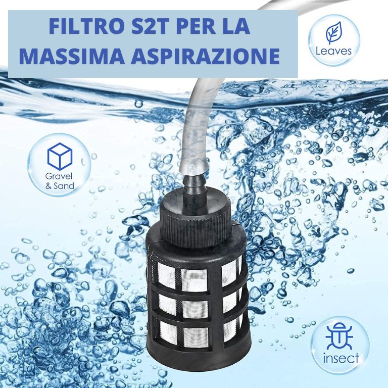 • Aspira l’acqua da qualsiasi luogo (come da una piscina, un lago o un secchio): non c’è bisogno di collegarla al rubinetto